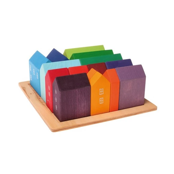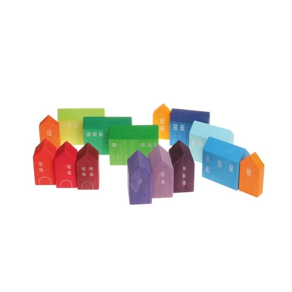 Coup de cœur pour cet ensemble de 14 maisonnettes en bois de tilleul peint à la main.