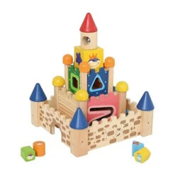 Jolie boîte à formes en bois naturel, gamme écologique créée récemment par la marque allemande de qualité Goki.