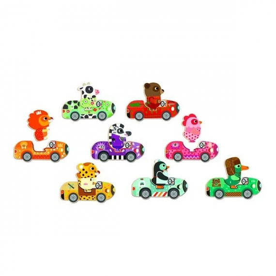 Bolidanimo est un jeu de 8 puzzles de 2 pièces que l’enfant dès 2 ans va s’amuser à reconstituer : chaque animal possède son bolide.