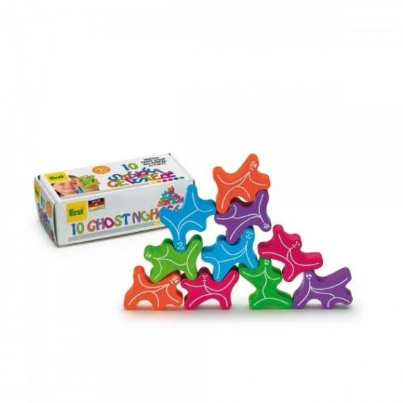 Empilés les uns sur les autres en veillant à ce que la pile ne tombe pas (jeu d’adresse et d’équilibre), ou assemblés les uns derrière les autres tel un rallye de dominos très captivant, ces fantômes vont exercer la coordination oeil/main mais aussi la concentration et l’habileté manuelle.