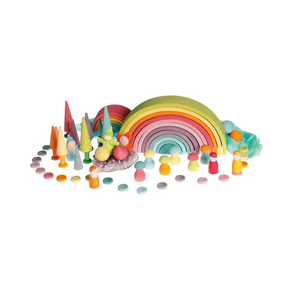 (Existe aussi en nuances Pastel : « Forêt Arc en ciel Grimm’s 12 pièces », en vente sur notre site).