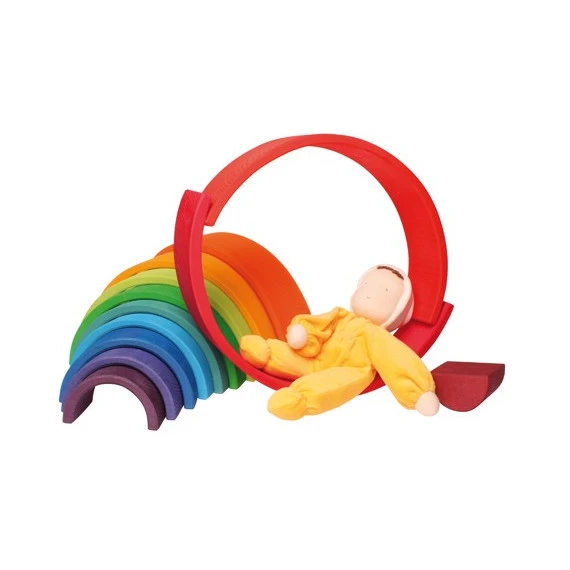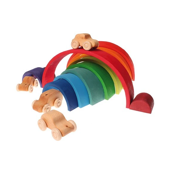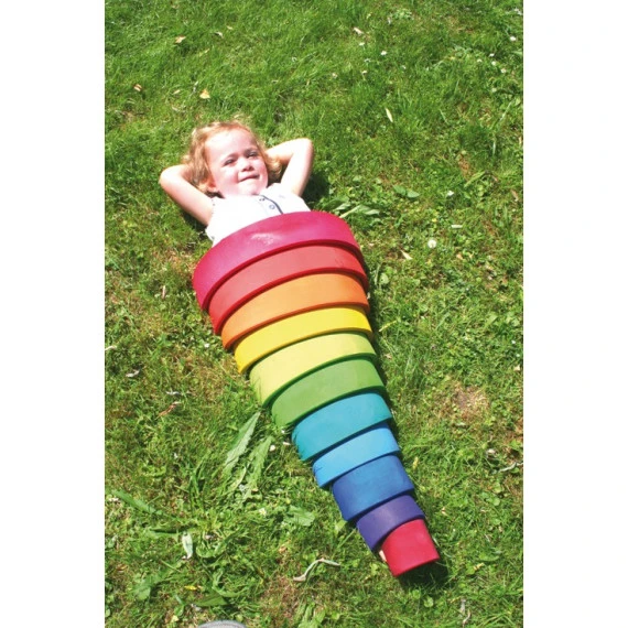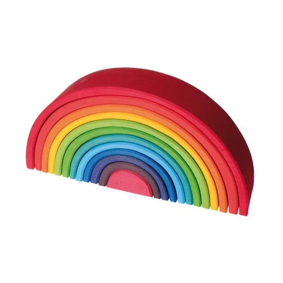 Ce grand arc-en-ciel de la marque allemande Grimm’s est un jeu écologique, fabriqué avec du bois massif de tilleul et des couleurs à base d’eau.