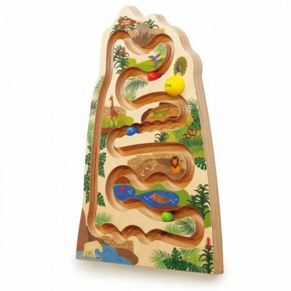 Le but de ce jeu est de promener trois grosses boules en bois coloré dans ce zoo des animaux africains, et de les faire dévaler le long chemin sinueux.