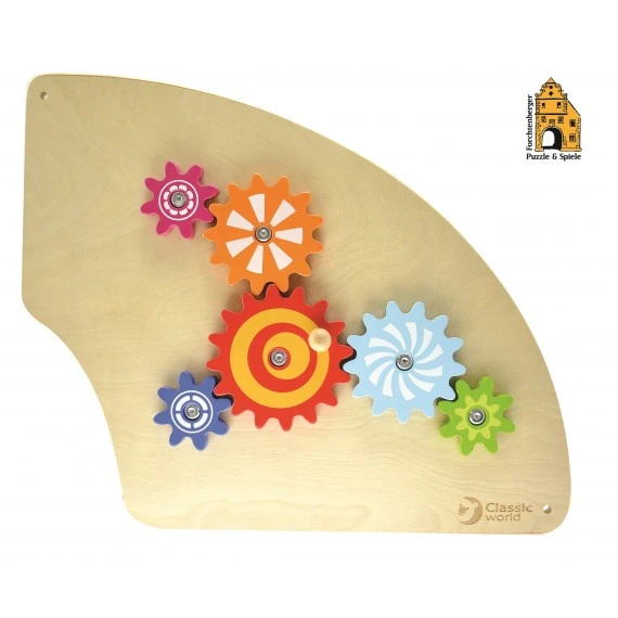 – un jeu d’engrenages qui stimulera leur motricité fine, la coordination œil-main, mais également leur sens de la logique et de l’observation. En manipulant la grande roue, ils découvriront la relation de cause à effet et seront captivés par ces roues, emboîtées les unes ou autres, qui tournent toutes en même temps.