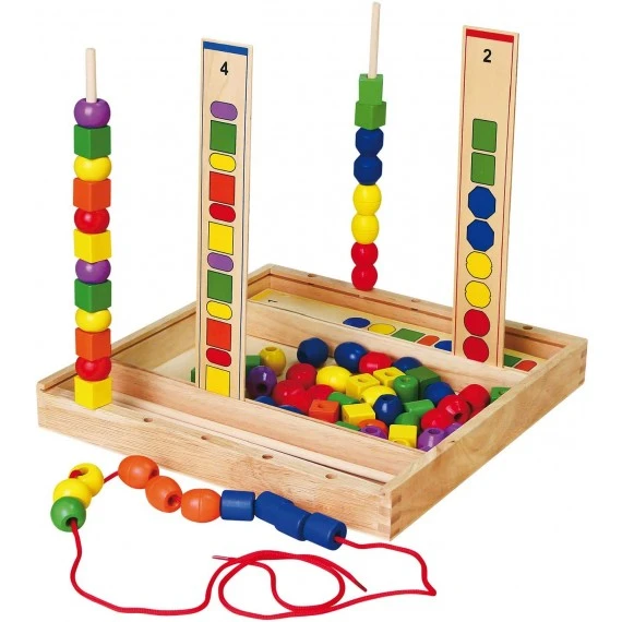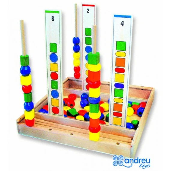 Ce jeu va permettre à l’enfant de développer son sens de l’observation afin de réaliser des suites de perles conformes au modèle proposé. Il va également stimuler sa dextérité manuelle et renforcer sa reconnaissance des formes et des couleurs (discrimination visuelle).
