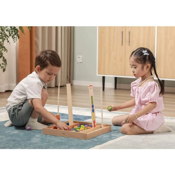 Il peut être utilisé par deux ou trois enfants en même temps (10 tiges en bois, environ 80 perles).