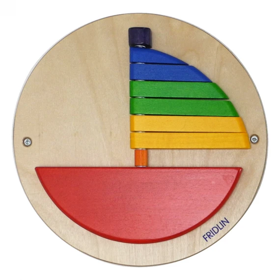 Avec ses couleurs primaires attrayantes, la voile de ce bateau constituée de 6 baguettes de bois mobiles, cela créé des formes différentes qui fascinent les yeux des petits et aiguisent leur curiosité.