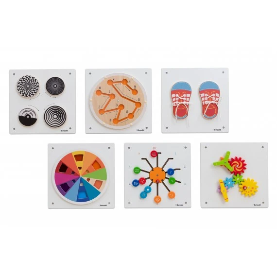 Avec leurs couleurs vives et leurs activités diverses, ces jeux muraux éveillent tous les sens et la curiosité du jeune enfant.